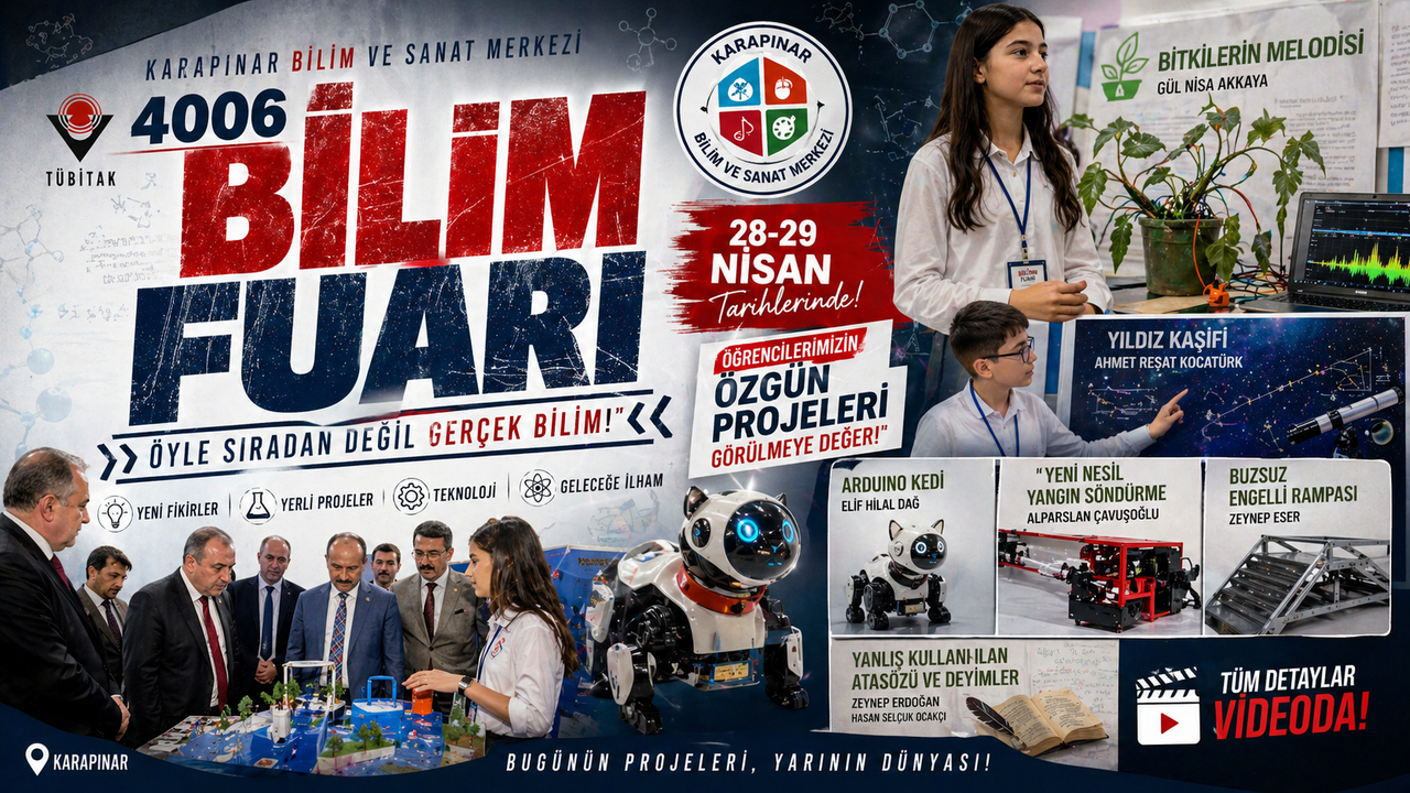 Karapınar’da düzenlenen TÜBİTAK 4006 Bilim Fuarı, sıradan bir okul etkinliği olmanın çok ötesine geçerek ilçenin bilimsel potansiyelini gözler önüne serdi. Karapınar Bilim ve Sanat Merkezi (BİLSEM) öncülüğünde gerçekleştirilen organizasyon, öğrencilerin teorik bilgiyi somut üretime dönüştürdüğü güçlü bir platform haline geldi.