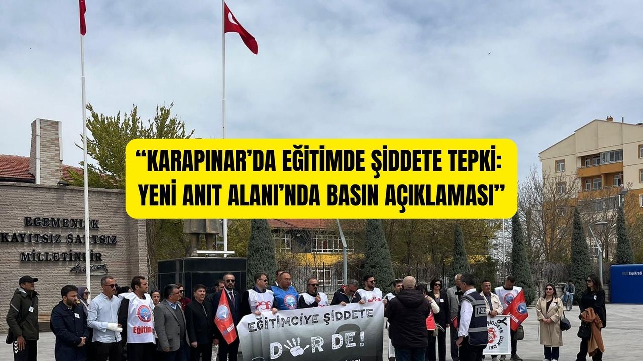 Karapınar’da, Karapınar Yeni Anıt Alanı’nda bir araya gelen eğitimciler, son dönemde artan eğitimde şiddet olaylarına karşı basın açıklaması yaptı. Anadolu Eğitim Sendikası öncülüğünde gerçekleştirilen açıklamaya öğretmenler ve vatandaşlar katıldı.